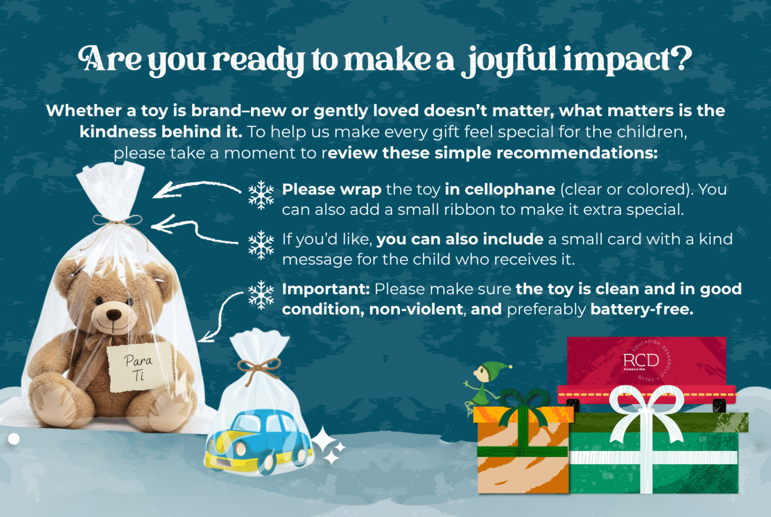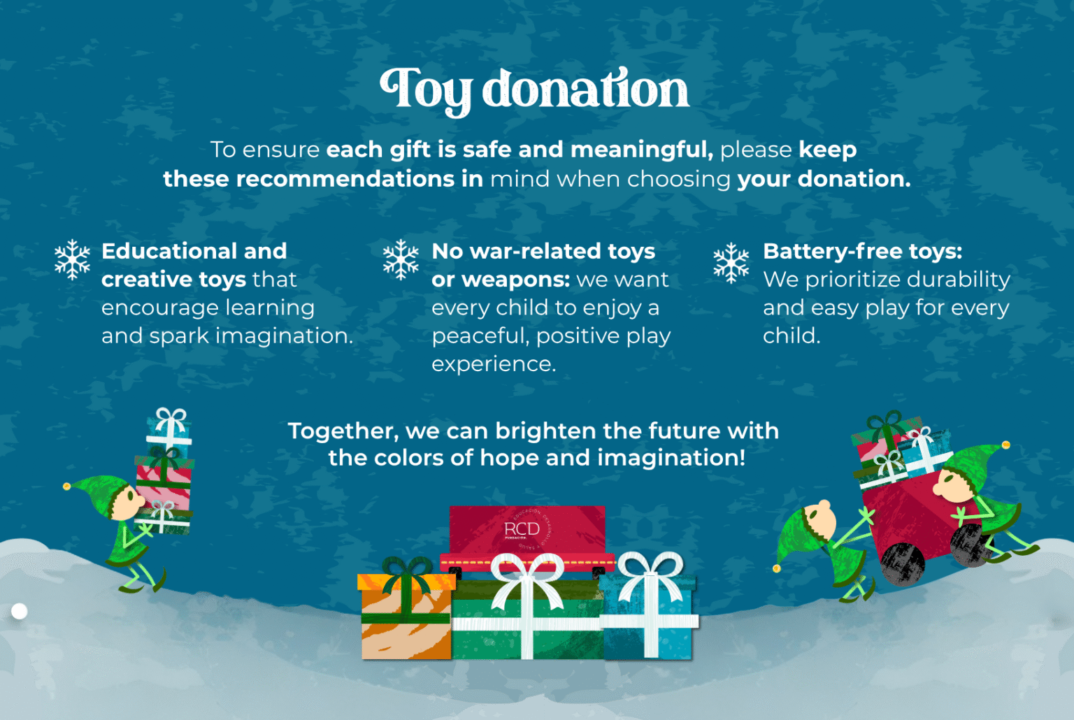 At RCD Foundation, we value children's potential and their right to a childhood full of joy and learning. A toy is more than just an object; for a child, it is a companion on adventures that encourages imagination, creativity, and hope for the future.